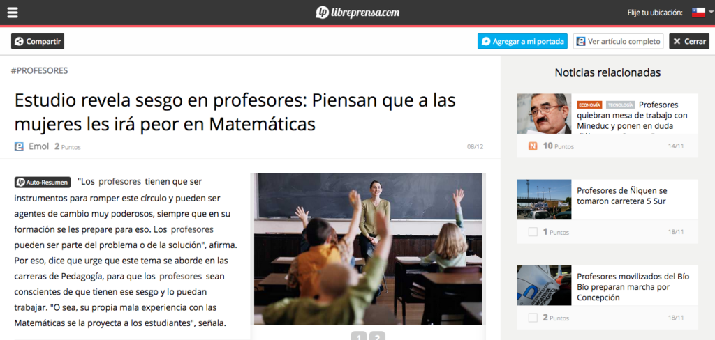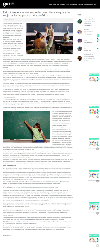 Emol.com: Estudio revela sesgo en profesores: Piensan que a las mujeres les irá peor en Matemáticas