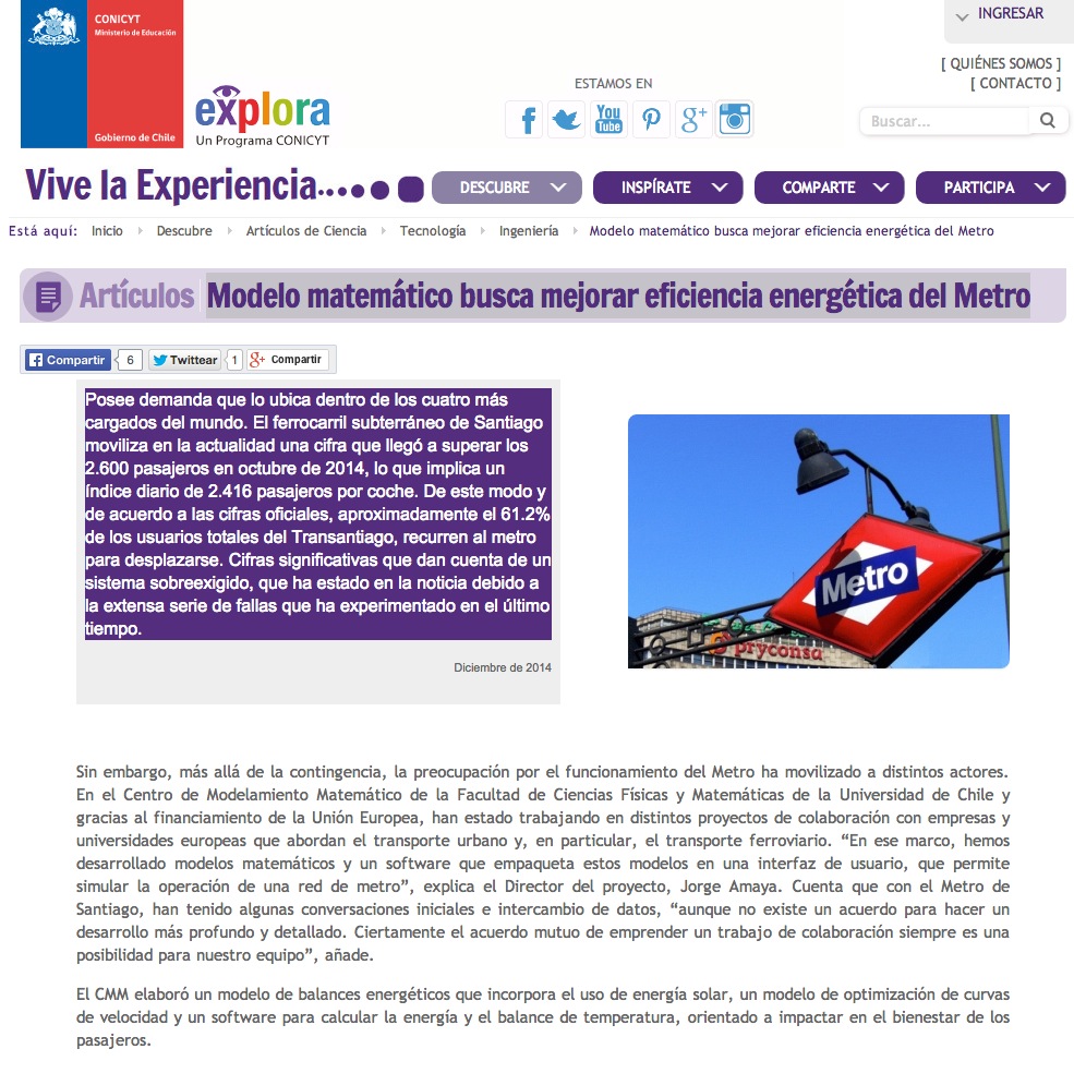 Conicyt-Explora: Modelo matemático busca mejorar eficiencia energética del Metro