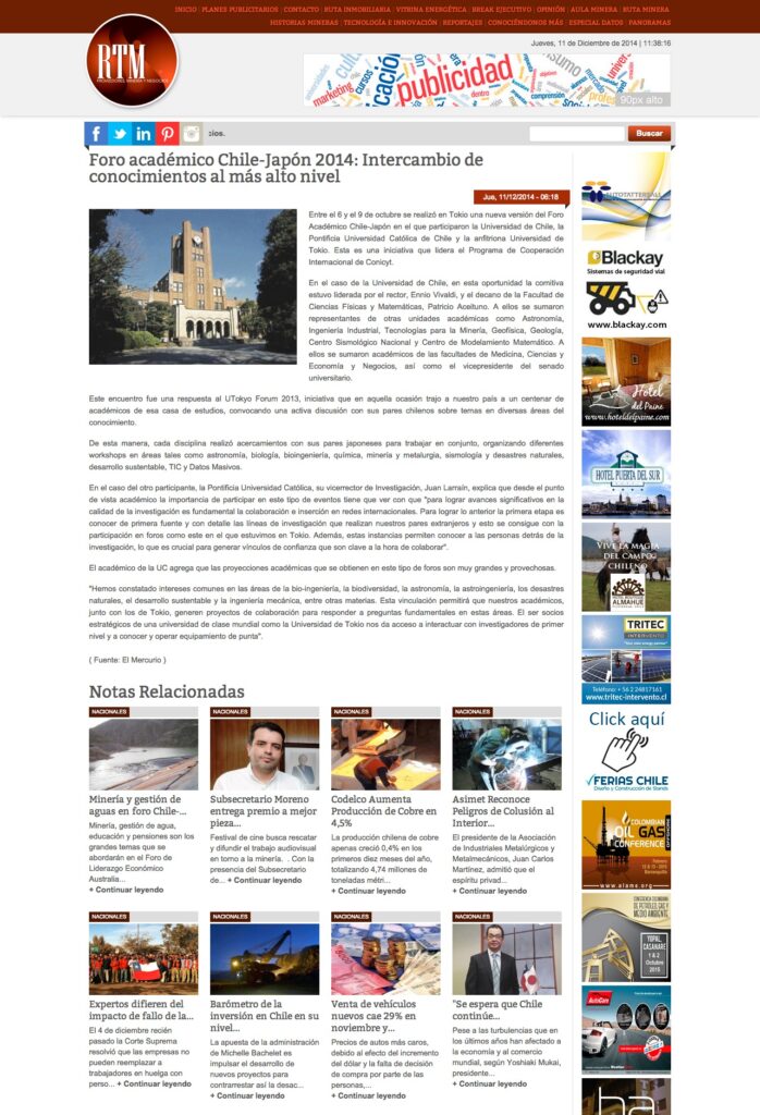 Revista Técnicos Mineros: Foro académico Chile-Japón 2014: Intercambio de conocimientos al más alto nivel