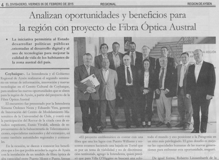Diario El Pingüino: Fibra óptica: evaluación técnica concluiría en abril de este año y trabajos partirían en 2016