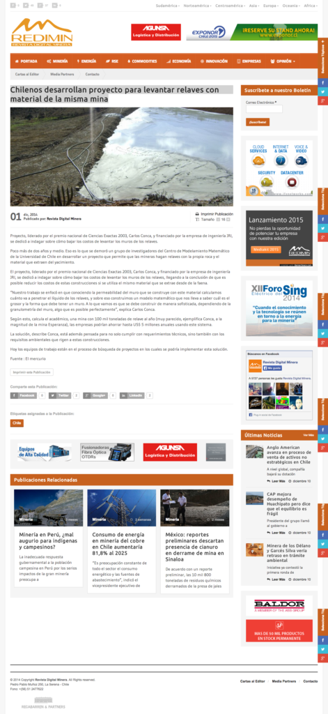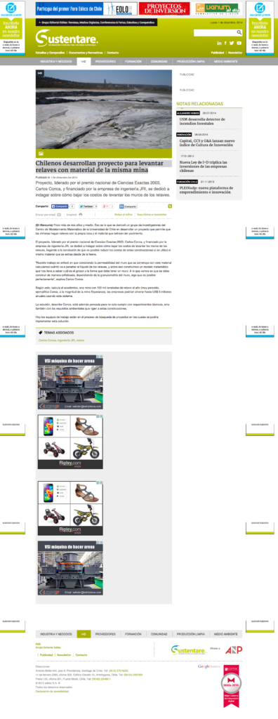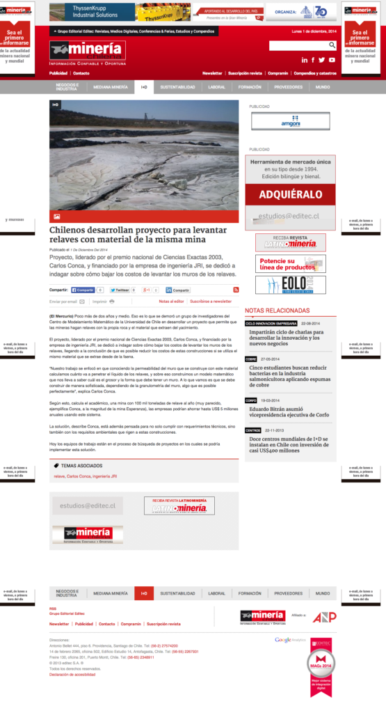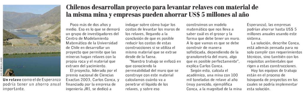 El Mercurio: Chilenos desarrollan proyecto para levantar relaves con material de la misma mina y empresas pueden ahorrar US$ 5 millones al año