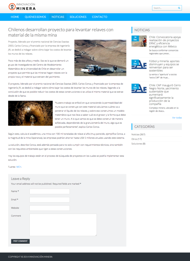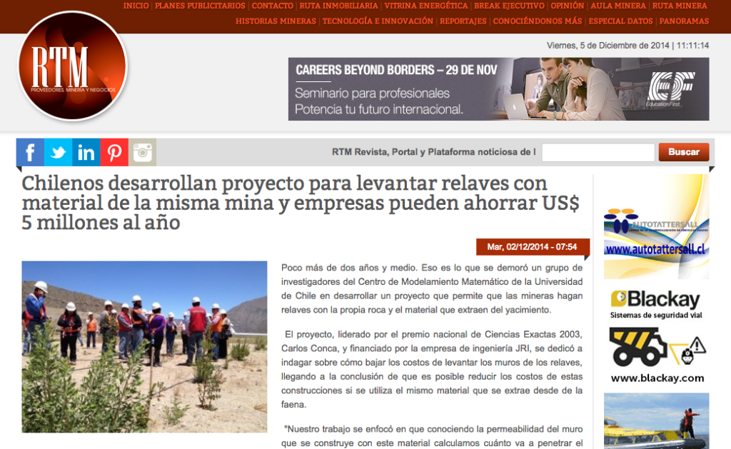 Web RTM: Chilenos desarrollan proyecto para levantar relaves con material de la misma mina y empresas pueden ahorrar US$ 5 millones al año