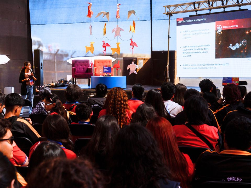 En esta undécima edición la astrofísica Alejandra Muñoz presentó la charla experta: “La Inteligencia Artificial son los nuevos ojos de la observación astronómica: Explorando el proyecto ALeRCE“. Allí explicó en profundidad el trabajo de esta herramienta de Aprendizaje Automático para la Clasificación Rápida de Eventos, fundada en el 2000 por el CMM y el Instituto Milenio de Astrofísica (MAS), la cual procesa el flujo de alertas del Zwicky Transient Facility (ZTF) y que aspira a convertirse en un Community Broker para el Observatorio Vera C. Rubin y su Legacy Survey of Space and Time (LSST).