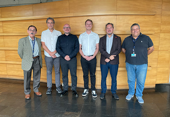 El Centro de Modelamiento Matemático (CMM) de la Universidad de Chile recibió el pasado miércoles 10 de enero la visita de representantes de la Universidad de Wurzburgo, Alemania. En el encuentro participaron Alexander Hilgarth, Jefe del Laboratorio de Prototipos del Departamento de Tecnología de la Información Aeroespacial, y Julian Rothe, asistente de investigación del mismo departamento y estudiante de doctorado, cuyos intereses de investigación incluyen el control avanzado de UAV y el vuelo en formación de enjambre. Por parte del Centro participaron Héctor Ramírez, director del CMM, Alejandro Maass, investigador principal y director de Relaciones Internacionales. Además, se contó con la presencia de Florencio Utreras, director del Centro Regional Copernicus para América Latina y el Caribe, y Jaime Ortega, investigador principal del CMM y director científico de esta iniciativa.