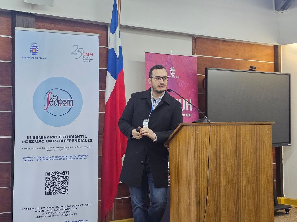 El evento ‘Seminario Estudiantil de Ecuaciones Diferenciales: Vinculación con el Medio para el Fortalecimiento de la Enseñanza y las Matemáticas Aplicadas’ es un encuentro organizado por el académico del Departamento de Ciencias Básicas, Facultad de Ciencias de la Universidad del Bío-Bío (UBB) e investigador del Centro de Modelamiento Matemático de la U. de Chile Eligio Colmenares García