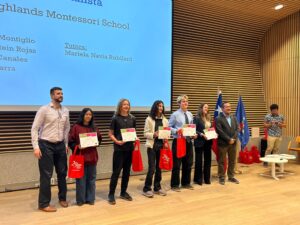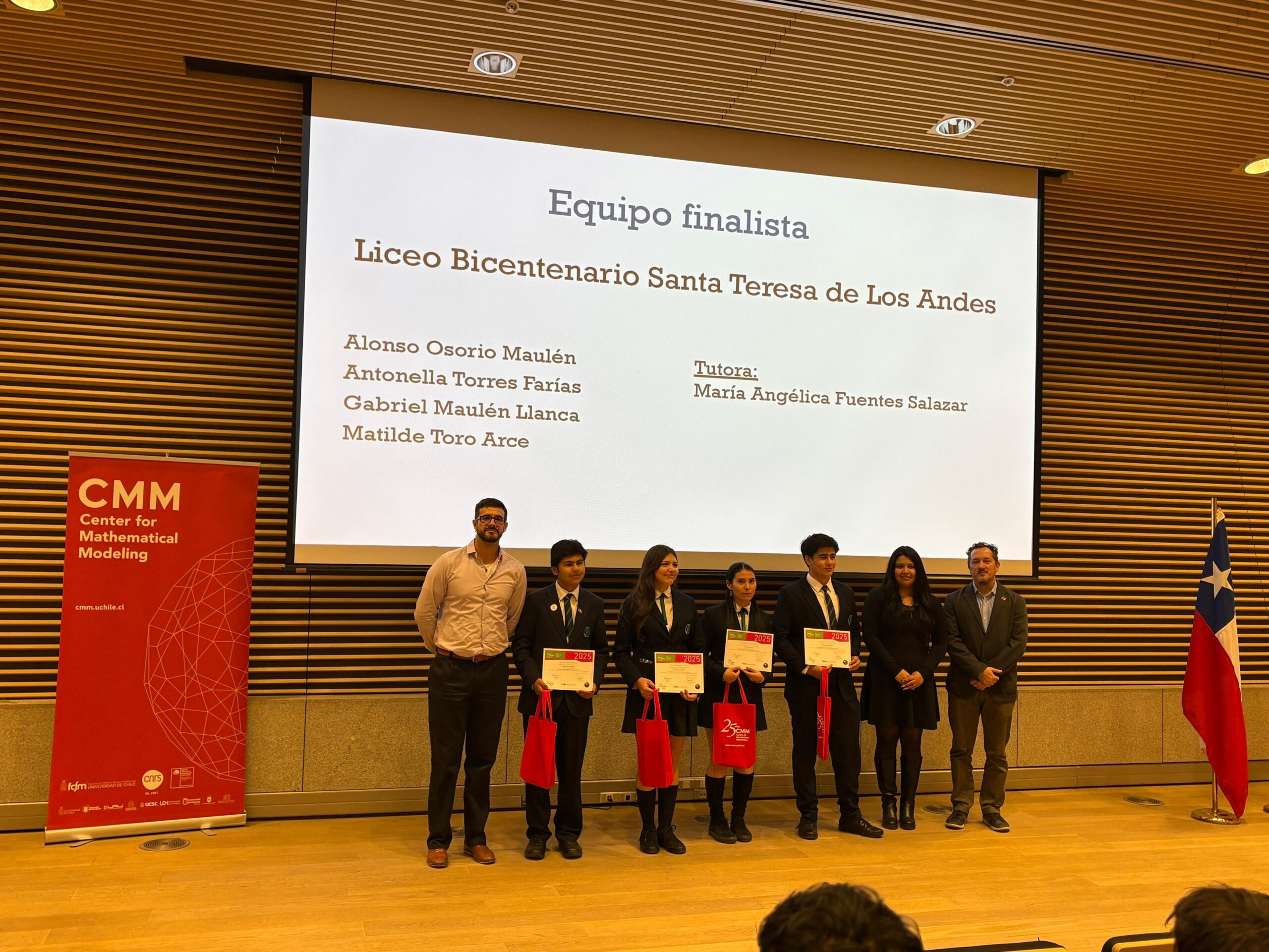 La ceremonia también rindió un homenaje especial a la profesora María Angélica Fuentes Salazar, del Liceo Bicentenario Santa Teresa de Los Andes (Colina), quien apoyó a cuatro equipos finalistas y a los dos que finalmente representaron a Chile en el certamen internacional. Su liderazgo, compromiso y vocación pedagógica fueron fundamentales en el desarrollo de modelos matemáticos innovadores y rigurosos.