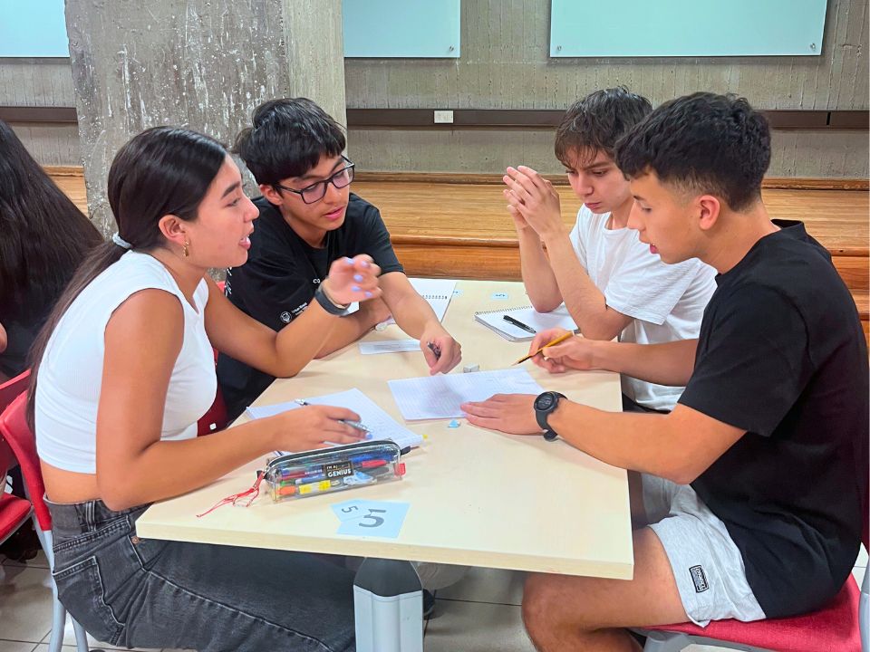 Fue una instancia muy bonita porque pude compartir con gente y unir nuestros pensamientos, nuestra manera de llegar a la respuesta. Fue bacán porque en algunas cosas yo no vi algo, me cerré en mi resolución, y con otras personas pude abrirme, expandirme a otro lado. También, por lo que nos dijo el monitor a cargo, más que centrarnos en las respuestas, había que centrarnos en las preguntas que se y en cómo llegar al resultado. No se trata solo de dar una respuesta, sino de la explicación detrás de ella. Entonces, fue importante escuchar la opinión de todos, tanto de nuestros compañeros como del profesor, para entender mejor el proceso de resolución.”