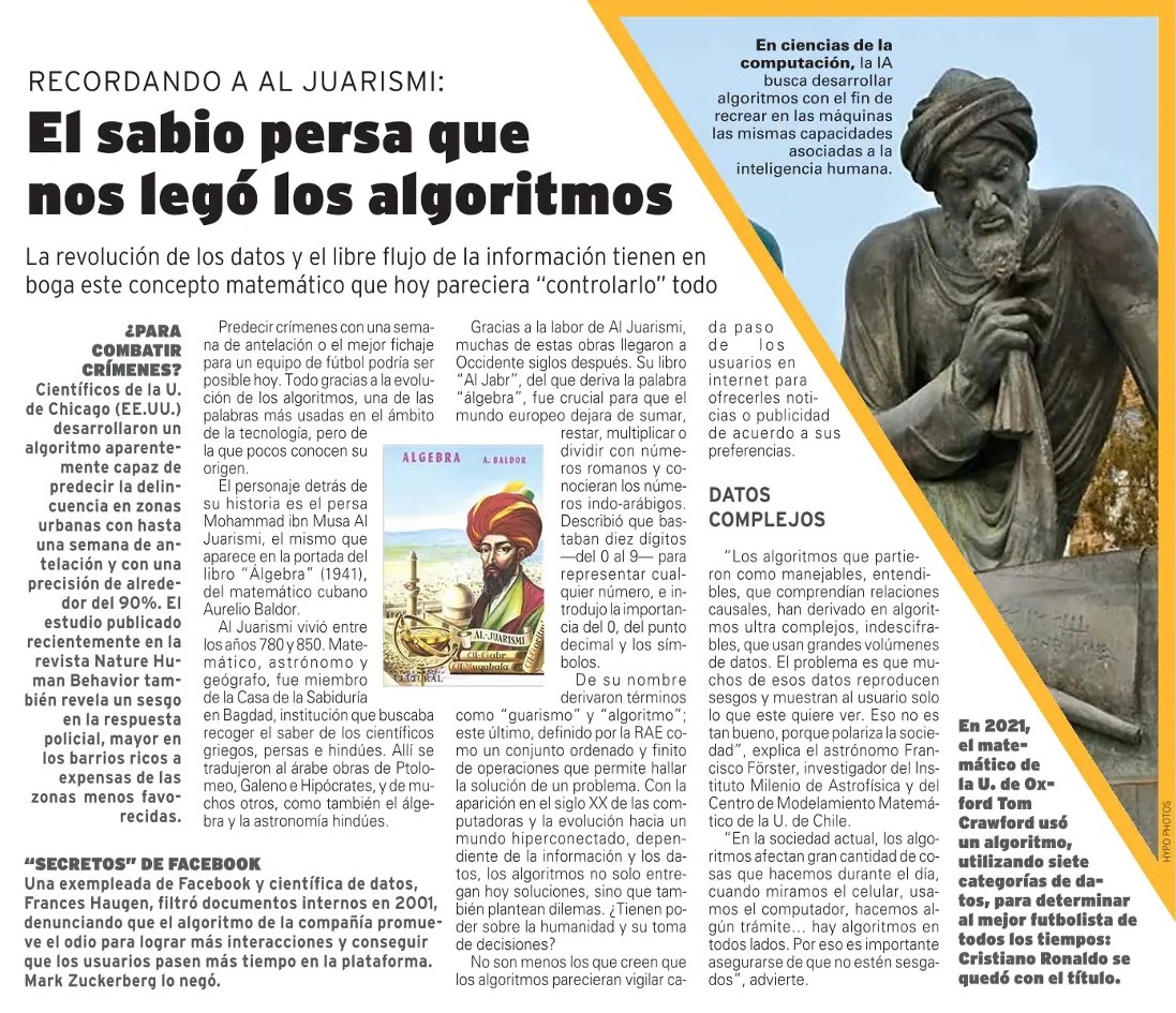 “«Los algoritmos que partieron como manejables, entendibles, que comprendían relaciones causales, han derivado en algoritmos ultra complejos, indescifrables, que usan grandes volúmenes de datos. El problema es que muchos de esos datos reproducen sesgos y muestran al usuario solo lo que este quiere ver. Eso no es tan bueno, porque polariza la sociedad», explica el astrónomo Francisco Förster, investigador del Instituto Milenio de Astrofísica y del Centro de Modelamiento Matemático de la U. de Chile”, recoge El Mercurio.
