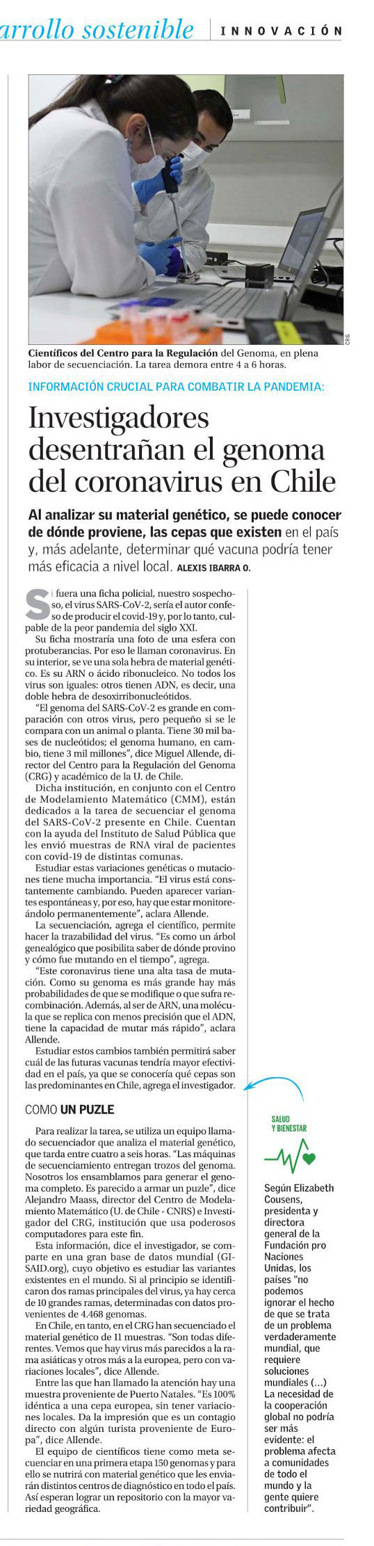 El Mercurio: Investigadores desentrañan el genoma del coronavirus en Chile