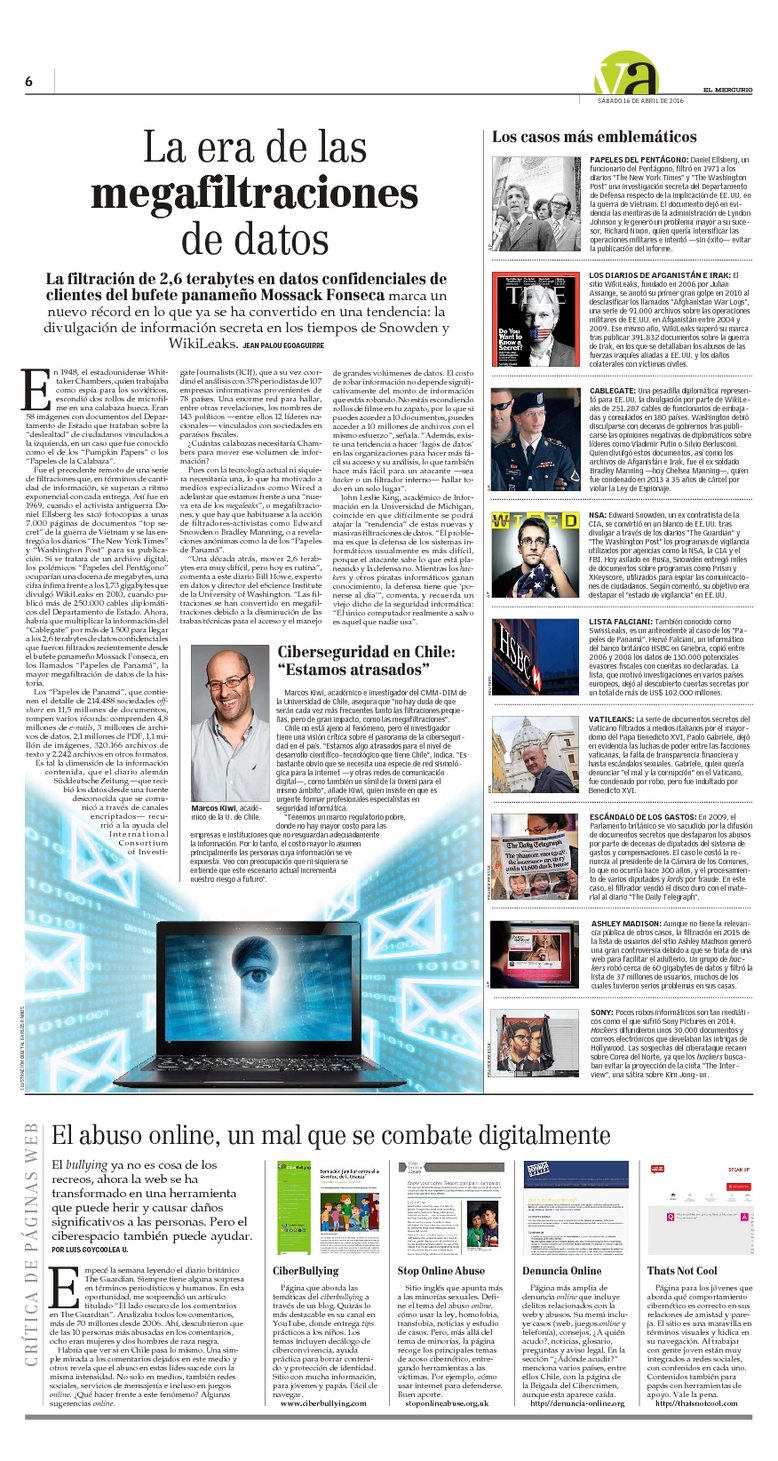 In a cover note of Vida Actual section, CMM researcher Marcos Kiwi is interviewed about the possibility of leak’s cases in Chile similar to Panama Papers.