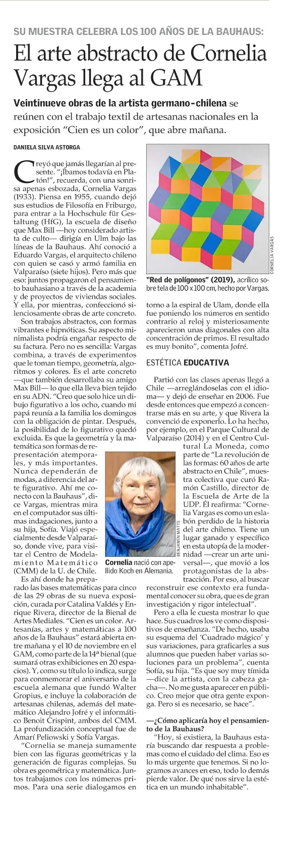 El Mercurio article about abstract artist Cornelia Vargas features her collaboration with CMM researchers Alejandro Jofré and Benoît Crespin.