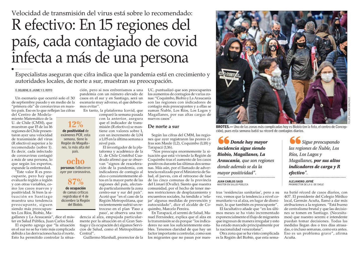 Artículo en el diario El Mercurio en torno a índice R efectivo de la pandemia Covid-19 en Chile, y que es monitoreado en una plataforma desarrollada por el Centro de Modelamiento Matemático (CMM) de la U. de Chile. Aparece el investigador del CMM y prorrector de la Universidad de Chile, Alejandro Jofré.