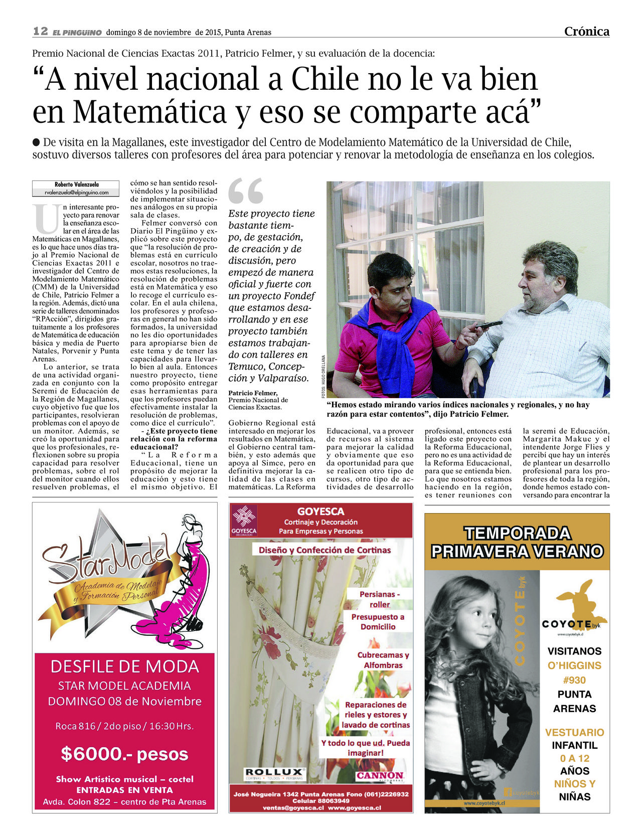 CMM Researcher Patricio Felmer talks about national mathematic education status and the workshop for mathematic teachers that he’s doing in Magallanes. Source: El Pingüino