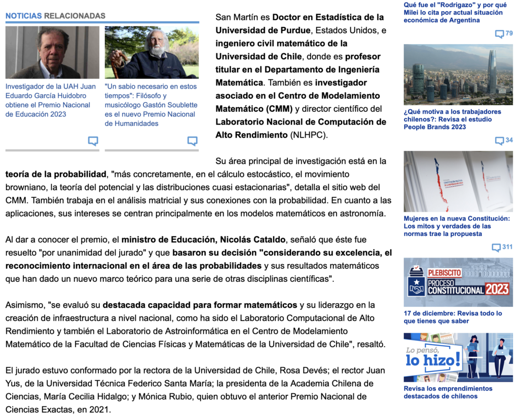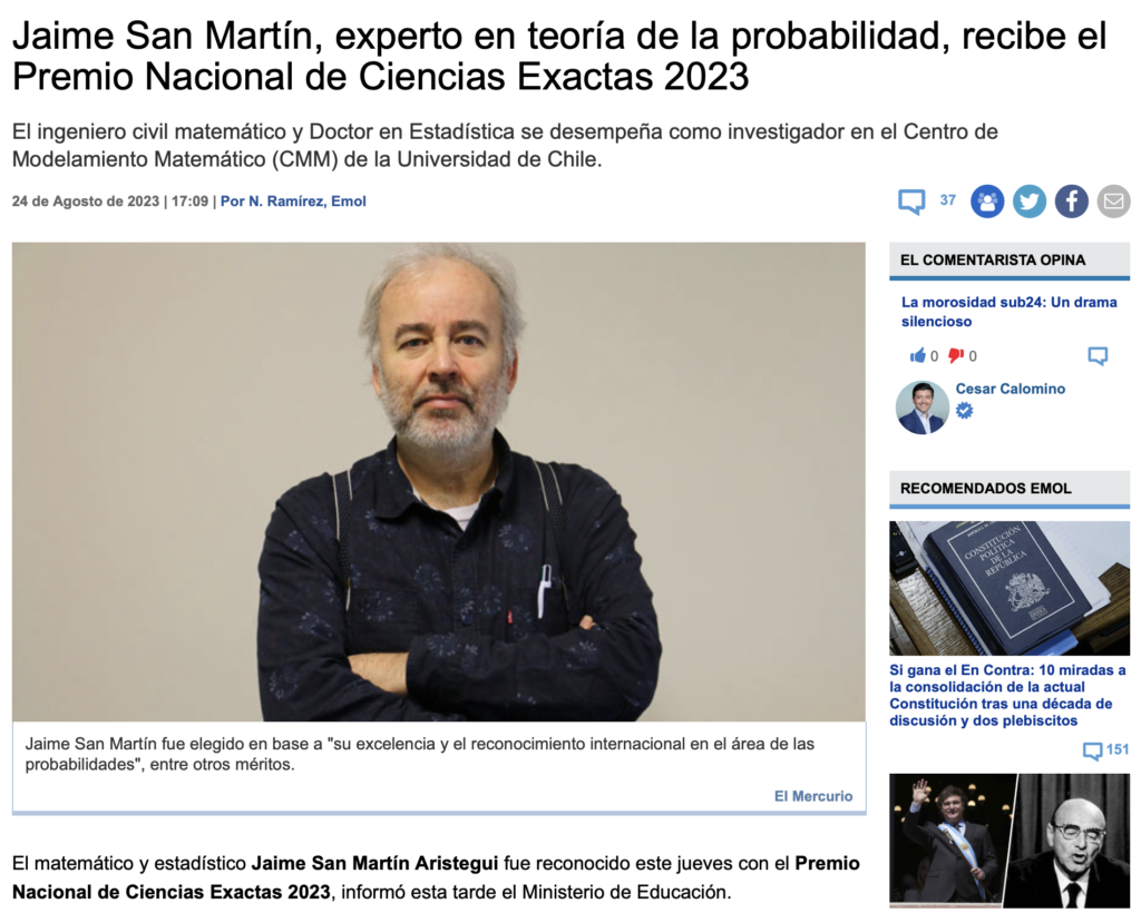 Emol: Jaime San Martín, experto en teoría de la probabilidad, recibe el Premio Nacional de Ciencias Exactas 2023