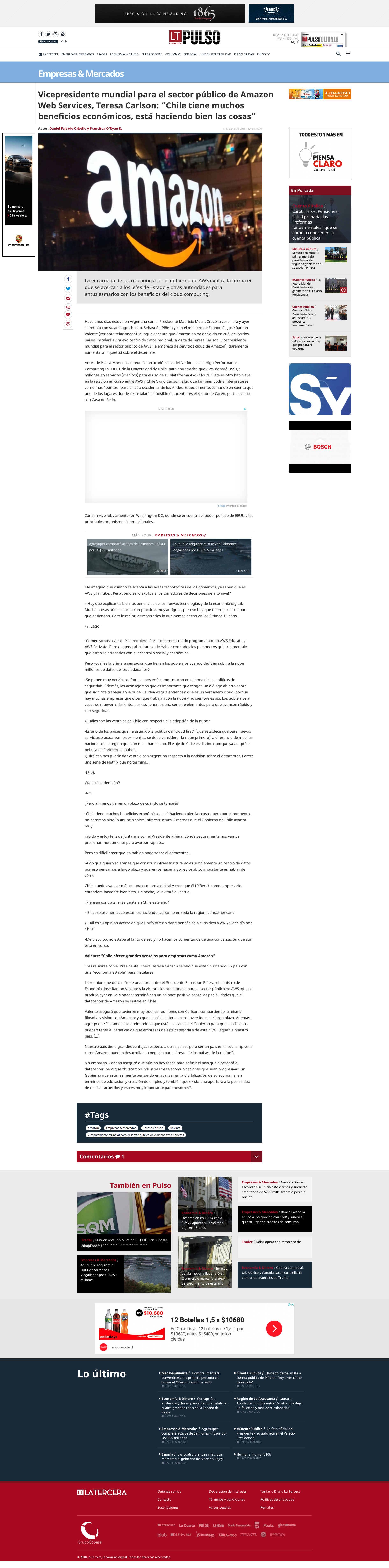 latercera.com: Vicepresidente mundial para el sector público de Amazon Web Services, Teresa Carlson: “Chile tiene muchos beneficios económicos, está haciendo bien las cosas”