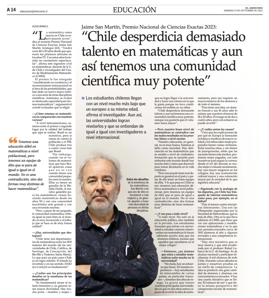 Jaime San Martín a El Mercurio: “Chile desperdicia demasiado talento en matemáticas y aun así tenemos una comunidad científica muy potente”