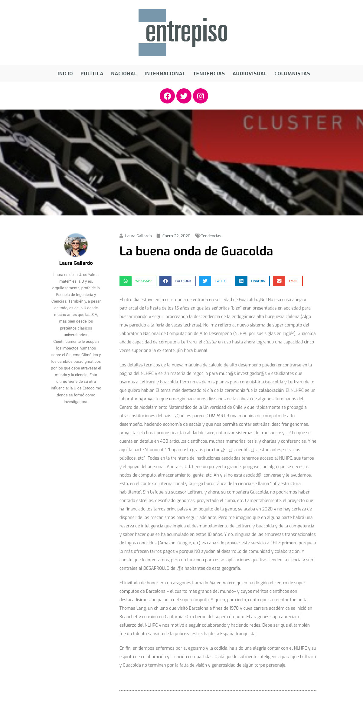 Column about Guacolda-Leftraru, the most powerful supercomputer in Chile, maintained by the National Laboratory for High Performance Computing (NLHPC) at the Center for Mathematical Modeling.