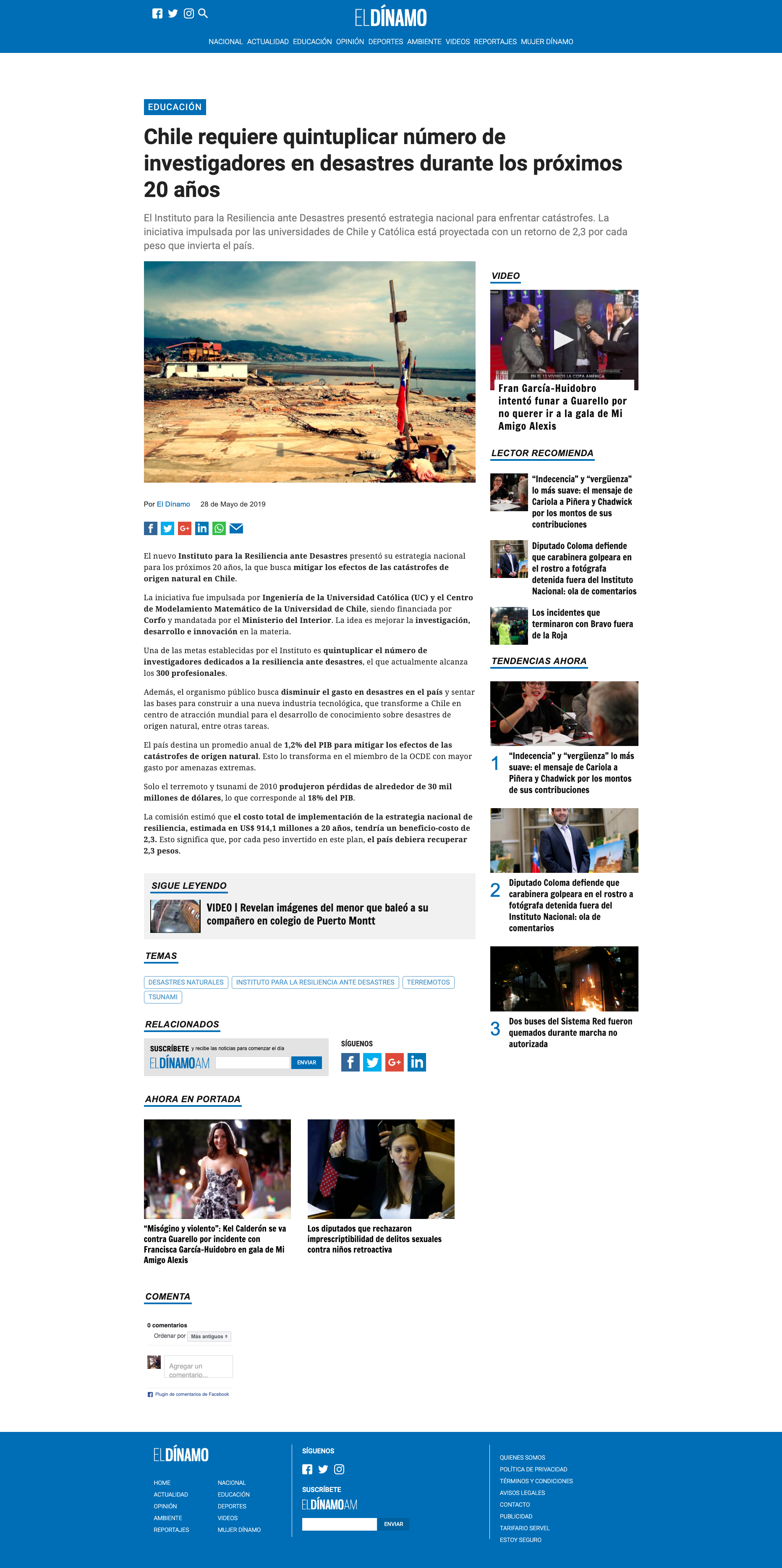 eldinamo.cl: Chile requiere quintuplicar número de investigadores en desastres durante los próximos 20 años