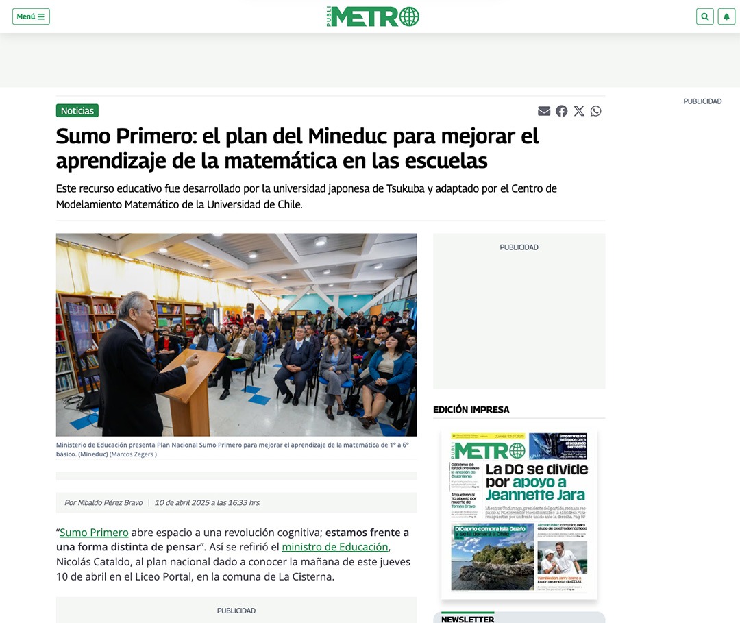 Publimetro.cl: Sumo Primero: el plan del Mineduc para mejorar el aprendizaje de la matemática en las escuelas