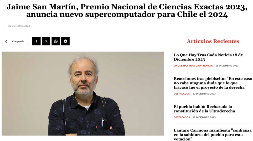 Un gran trabajo ha desarrollado el destacado científico para la adquisición de un nuevo supercomputador para Chile, dispositivo indispensable para la elaboración y almacenamiento de datos que aportan directamente a la sostenibilidad y el avance tecnológico del país.