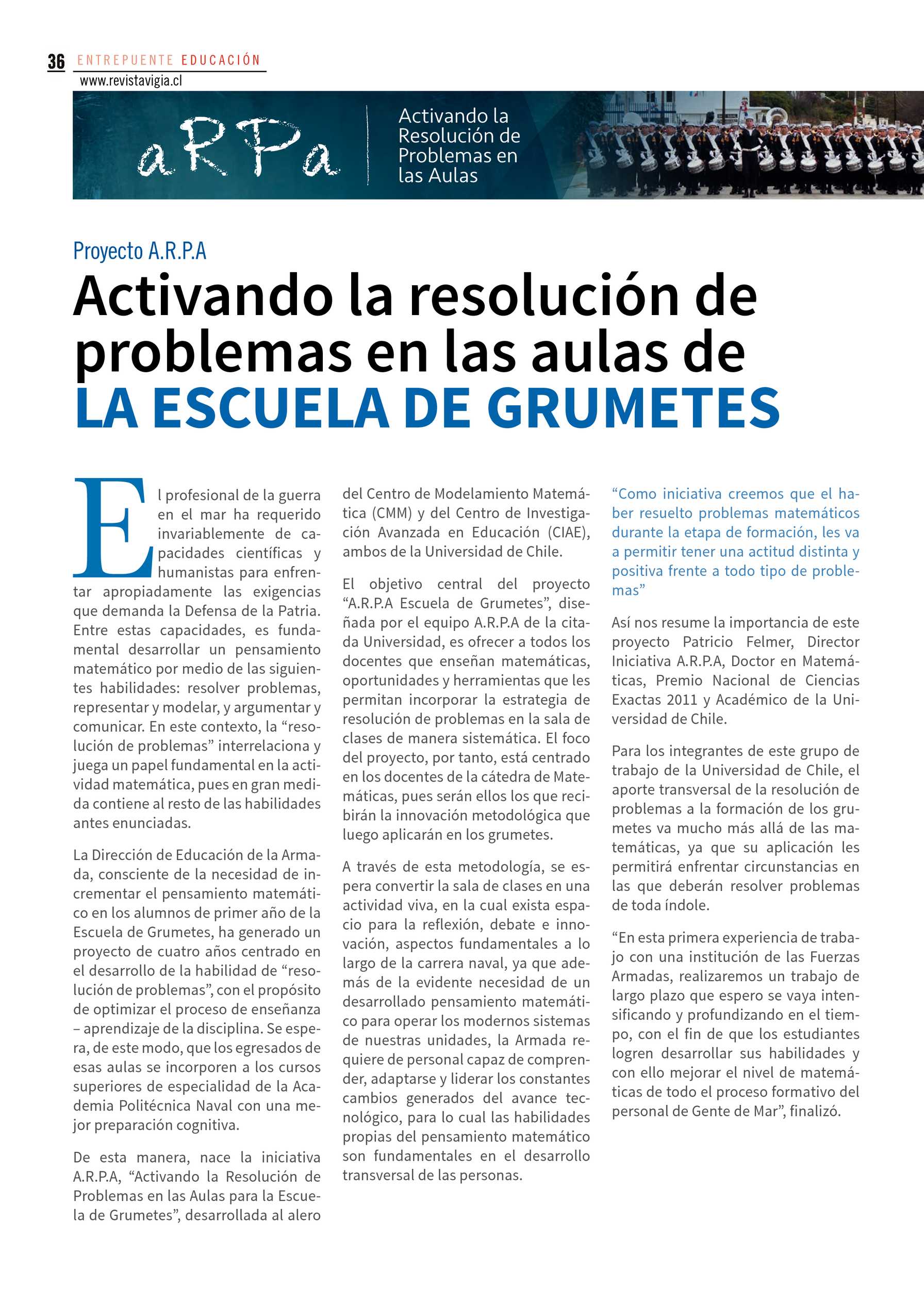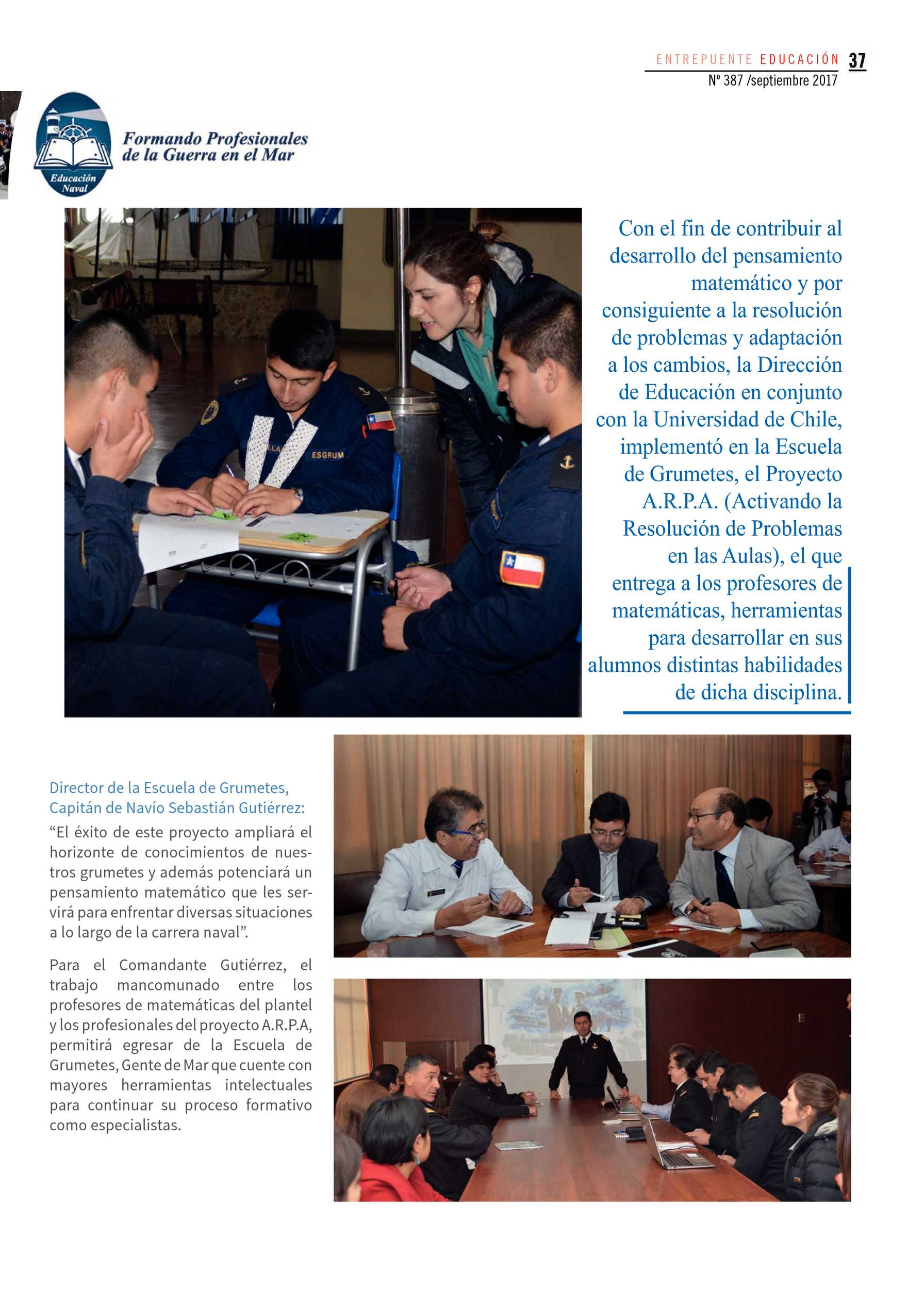 Article on ARPA project at Escuela de Grumetes of Chilean Navy.