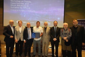 La jornada del workshop también incluyó un homenaje al legado del profesor Tomás Lang, destacado ingeniero de la U. de Chile y académico nacional con fuertes lazos internacionales, cuyo trabajo pionero en aritmética informática y arquitectura digital sentó las bases para la moderna computación de alto rendimiento.
