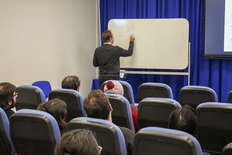 En su charla, el Dr. Kowalczyk dio cuenta, en general, de su experiencia como investigador y, en particular, del trabajo de varios años que, junto a su colega Claudio Muñoz, los llevó a ser los primeros investigadores de universidades chilenas en publicar en la prestigiosa Journal of the American Mathematical Society.