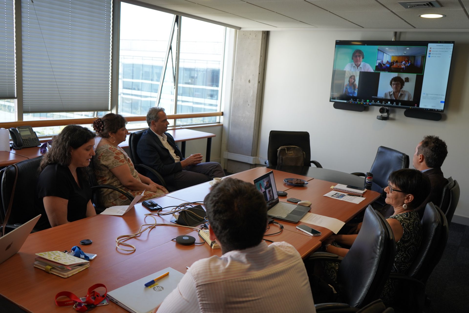 La actividad se llevó a cabo el lunes 9 de marzo en dependencias del Centro de Modelamiento Matemático (CMM) albergado en la Facultad de Ciencias Físicas y Matemáticas (FCFM) de la Universidad de Chile, reuniendo a autoridades, académicos y académicas de ambas universidades de manera presencial y remota.