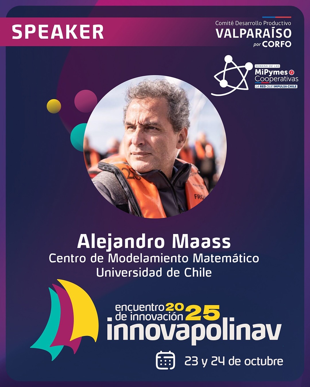 El Prof. Alejandro Maass dictará una charla en el marco de la inauguración de Innovapolinav 2025, evento anual de alta convocatoria organizado por la Armada de Chile en Viña del Mar, donde se reúne el ecosistema de Ciencia, Tecnología, Conocimiento e Innovación (CTCI) regional y nacional.