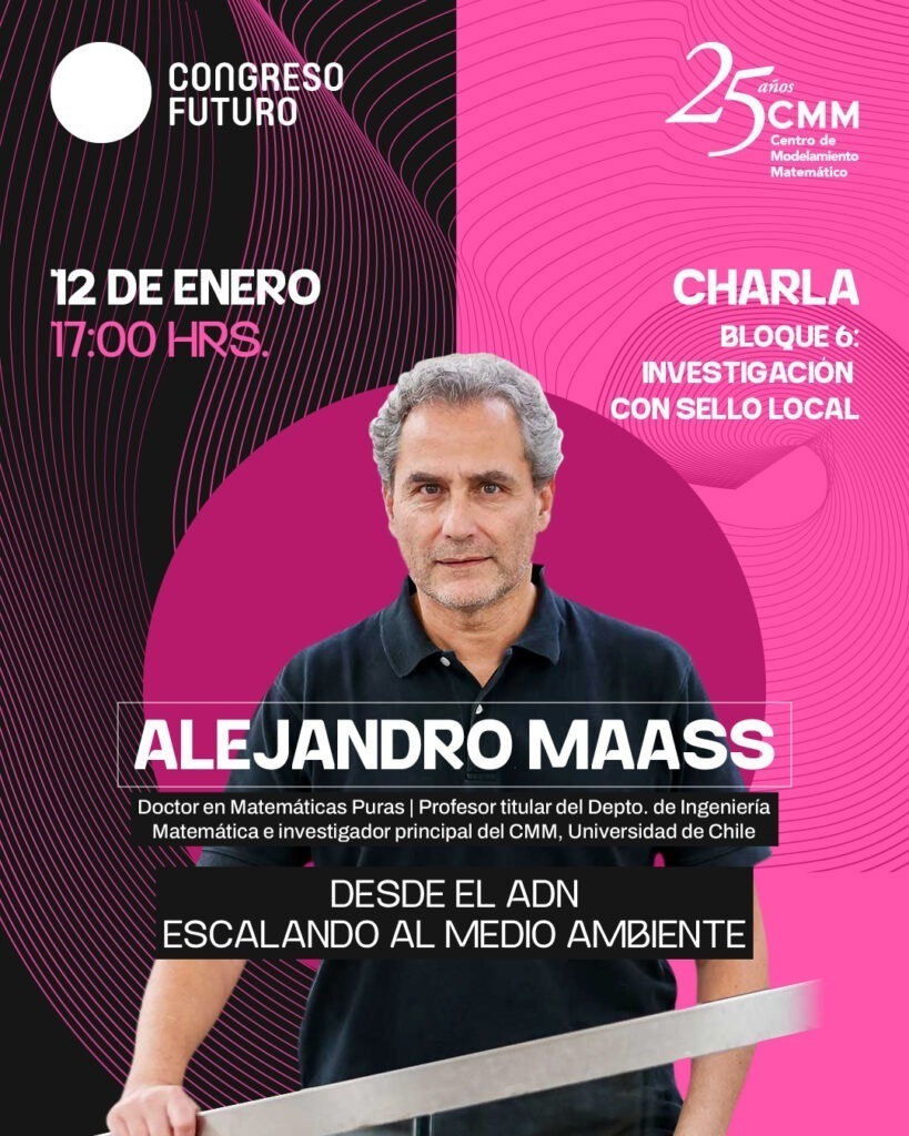 En esta 15ª edición de Congreso Futuro, cuyo eje temático es “Humanidad: ¿Hacia dónde vamos?”, entre los oradores principales de este encuentro de divulgación científica se encuentra Alejandro Maass, investigador principal del Centro de Modelamiento Matemático (CMM) y Premio Nacional de Ciencias Exactas 2025. Gratamente, en esta ocasión también dictará una charla André Abreu, director de Políticas Internacionales de la Fundación Tara Ocean, institución francesa con la que el CMM ha colaborado extensamente en investigación sobre genómica del océano y cambio climático.