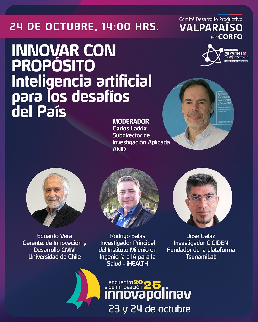 #Innovapolinav2025 #InteligenciaArtificial #IAConPropósito #CienciaChilena #InnovaciónTecnológica #CentrosANID #CMM #iHEALTH #CIGIDEN